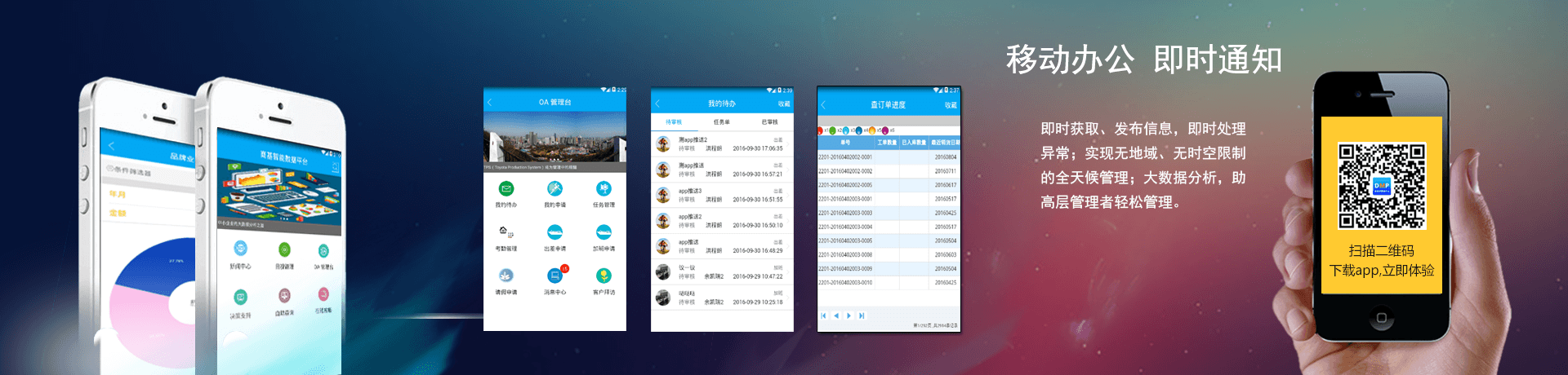 支持手機APP、微信移動運用,實時接收各系統消息,查詢數據 不再受空間限制,在外辦公無束縛!